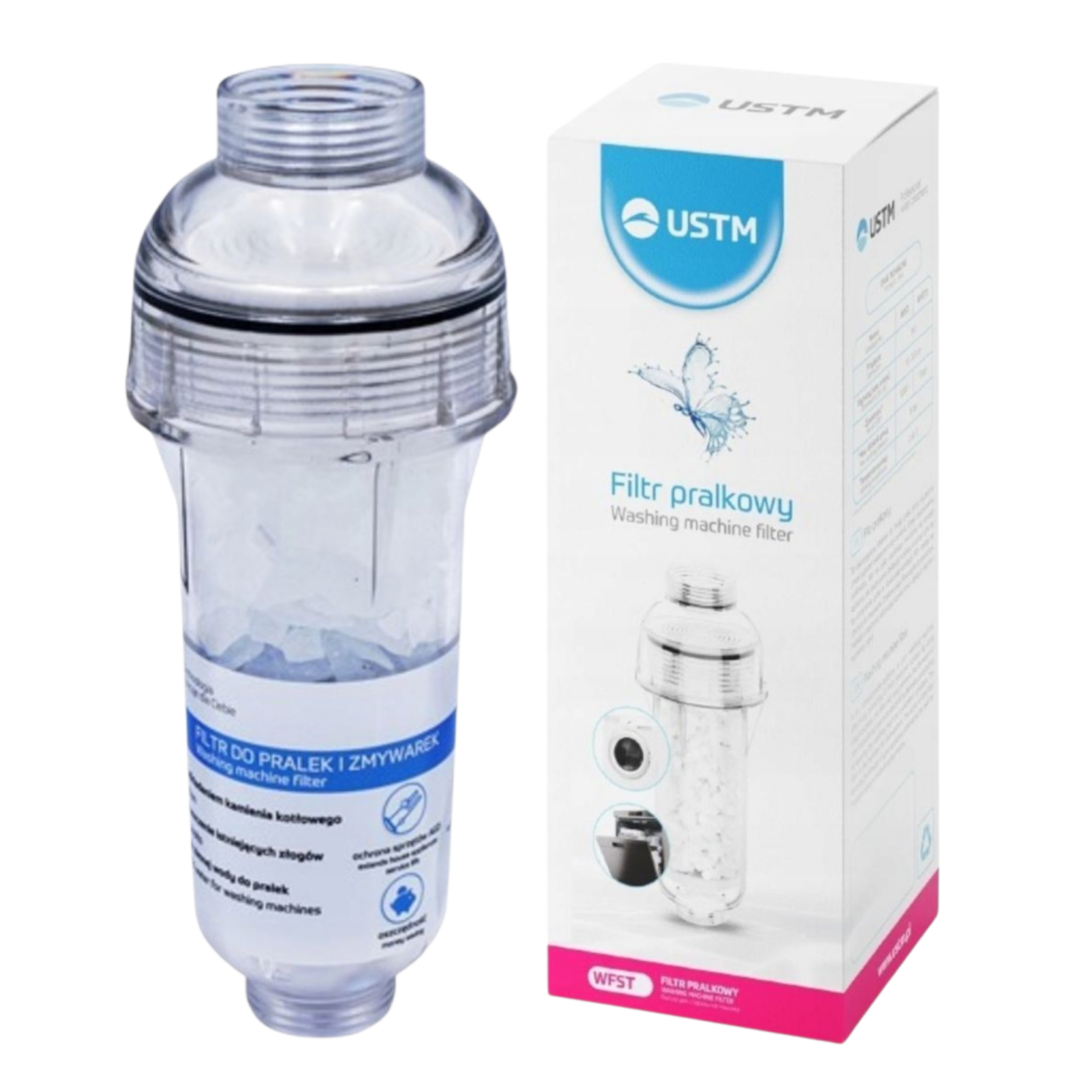 Het USTM WFST waterfilter is speciaal ontwikkeld om wasmachines en vaatwassers te beschermen tegen kalkaanslag en schadelijke mineralen die schade veroorzaken aan huishoudelijke apparaten. Dankzij de twee-traps filtratie vermindert dit filter de vorming van hardnekkige kalkafzetting, waardoor je apparaten efficiënter blijven werken en aanzienlijk langer meegaan.